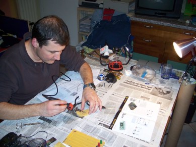 ieri sera ci si è incontrati, il SuperMarioProf e Giorgio, per cominciare a metter giù l’hardware che consentirà all’anemometro di trasferire i dati rilevati via web / SMS, secondo lo schema riportato. Andando passo passo, abbiamo testato la possibilità di scrivere sulla EPROM del processore e a far lavorare un semplice programmino di lampeggiamento di LED. La procedura si è rivelata semplice e decisamente efficace e lascia ben sperare.