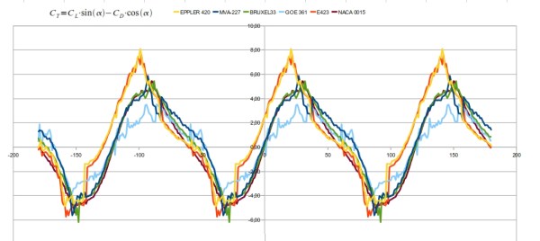 L’analisi della problematica relativa alla “Dead Band” ci ha condotti inevitabilmente ad affrontare, ancora una volta, la questione del profilo ottimale. Kirke nella sua tesi di cui abbiamo già detto afferma il generale miglioramento di prestazioni, intese come capacità di self-start della turbina, nel caso si scelgano profili alari curvi. Probabilmente a seguito di dati sperimentali limitati (trovare valori di portanza e resistenza per molti valori diversi del numero di Reynolds non è uno scherzo!) analizza il solo caso del profilo Selig 1210.