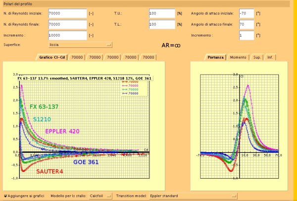 Per fortuna oggi possiamo fare affidamento su una serie di applicativi quali javaFoil, interfaccia web per XFoil, attraverso il quale ricavare i dati mancanti.L’utilizzo di questo specifico risiede nella sua versatilità e nella possibilità, tra le altre cose, di fissare il valore dell’Aspect Ratio (rapporto di aspetto: lunghezza della pala / corda del profilo) a valori finiti o infiniti; inoltre i risultati ottenuti concordano con buon margine con i valori tabulati e già citati.