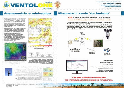 Inoltre vedremo i riscontri circa l’ipotesi in cantiere di un mini-corso sul minieolico da tenersi in terra piemontese presumibilmente a settembre, se riscontreremo un interesse al riguardo. Infine presenteremo l’avanzamento sostanziale in quel progetto parallelo al Ventolone di anemometro a basso costo GPRS.