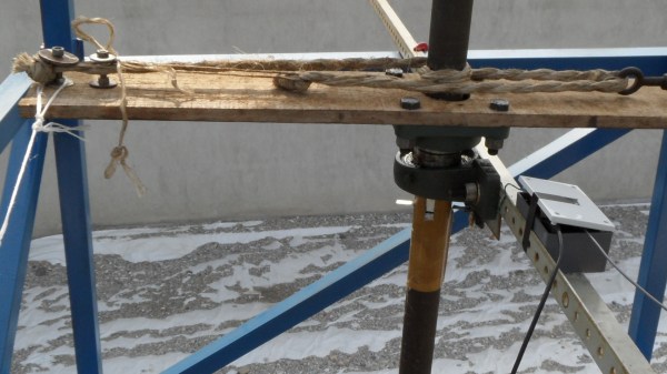 Ci siamo mossi in questo senso: avvolgendo una corda pre-tensionata attorno all’albero della turbina, misuriamo la forza che a una estremità della struttura il movimento della turbina genera su un dinamometro.