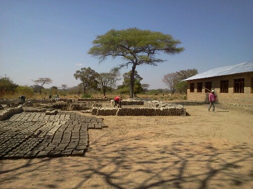 Qui Tarcisio sta costruendo una scuola con l’aiuto di alpini e volontari vari.
