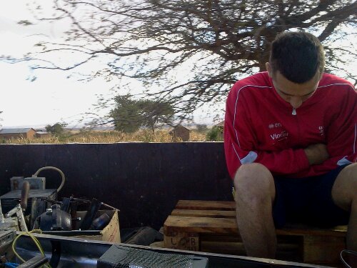 Stamattina comincia la settimana decisiva: abbiamo praticamente tutto pronto per essere montato, trasmissione (ancora: grazie Gian!), quadro elettrico, cavi, anemometri. Abbiamo adattato il tutto perche’ sia molto africano, per avvicinarci agli stili tecnici di qua…( 😉 )… per esempio, invece di un conduttore da 6mmq per ciascuna fase utilzzeremo 3 conduttori da 2,5mmq in parallelo, totale 9 conduttori invece di 3 in arrivo al quadro elettrico! Qui usa essere in tanti a fare un lavoro, vuoi non adeguarti? …